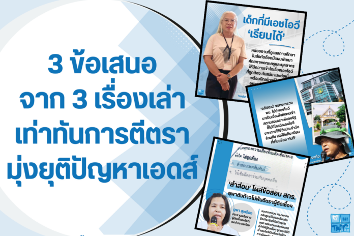 “เครือข่ายผู้ติดเชื้อเอชไอวี/เอดส์ ประเทศไทย” มี ‘3 ข้อเสนอ’ จาก ‘3 เรื่องเล่า’ ของคนในพื้นที่ เสนอไปยังหน่วยงานรัฐที่เกี่ยวข้อง เพื่อให้เป็นองค์กรต้นแบบที่จะไม่นำเอชไอวี/เอดส์ มาเป็นเงื่อนไขในการเลือกปฏิบัติจนอาจเป็นการละเมิดสิทธิของผู้ติดเชื้อฯ ดังนี้…